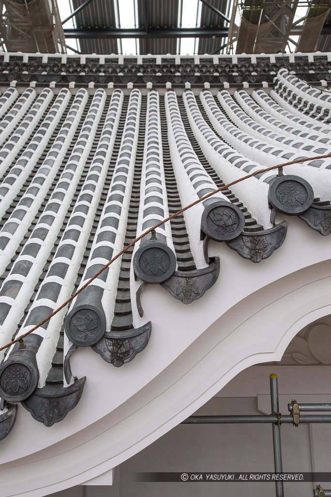 唐破風の軒丸瓦と滴水瓦・大天守五重屋根