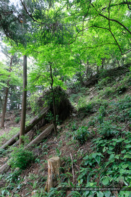 柵門跡東側の斜面と倒木と石垣|高解像度画像サイズ:4320 x 6480 pixels|写真番号:5DSA6390|撮影:Canon EOS 5DS
