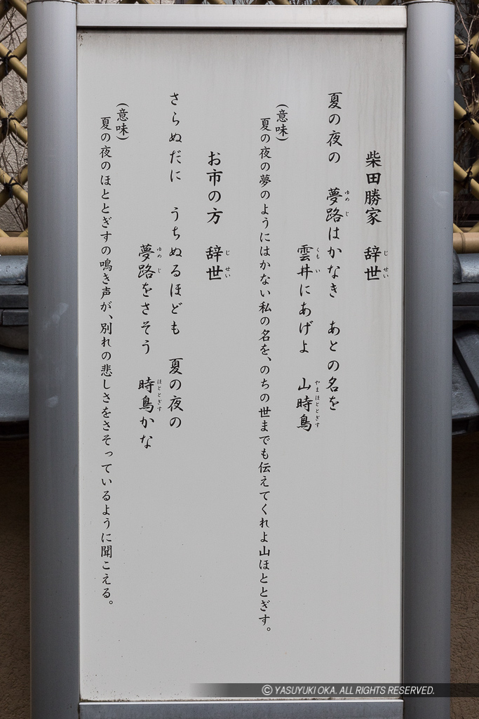 | HOME | 東日本の城 | 北陸の城 | 北ノ庄城 | 柴田勝家・お市の方・辞世の句碑 |