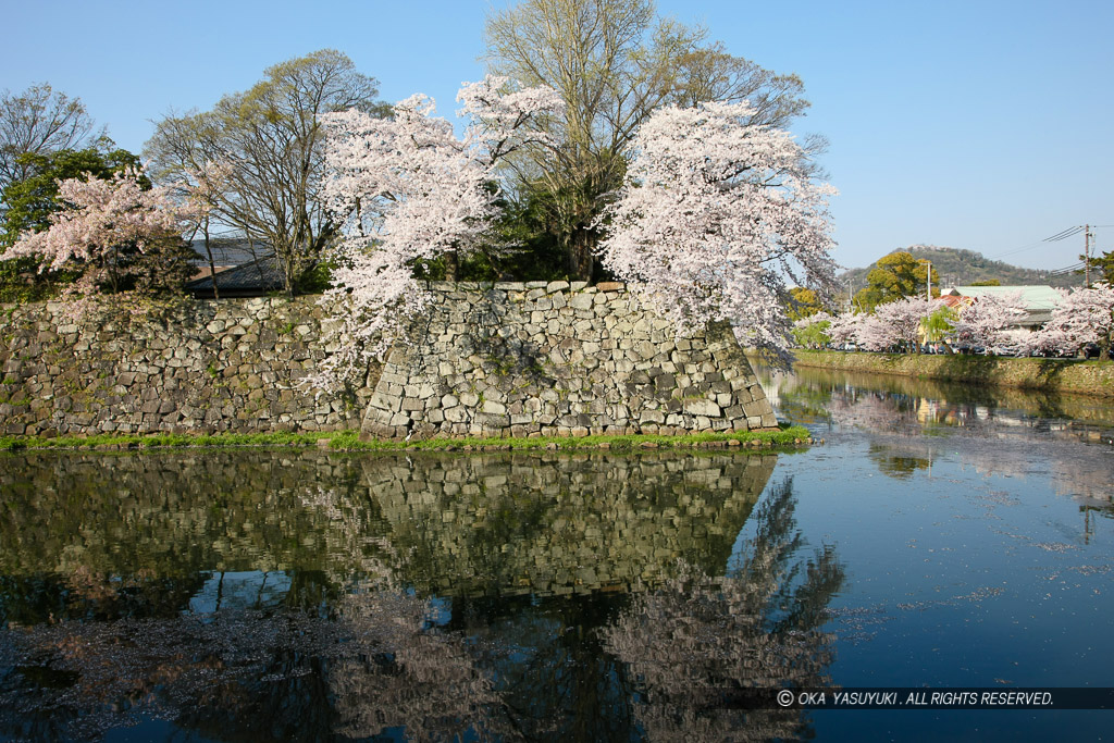 彦根城内堀と桜|高解像度画像サイズ:5317 x 3545 pixels|写真番号:1P3J7349|撮影:Canon EOS-1Ds Mark III